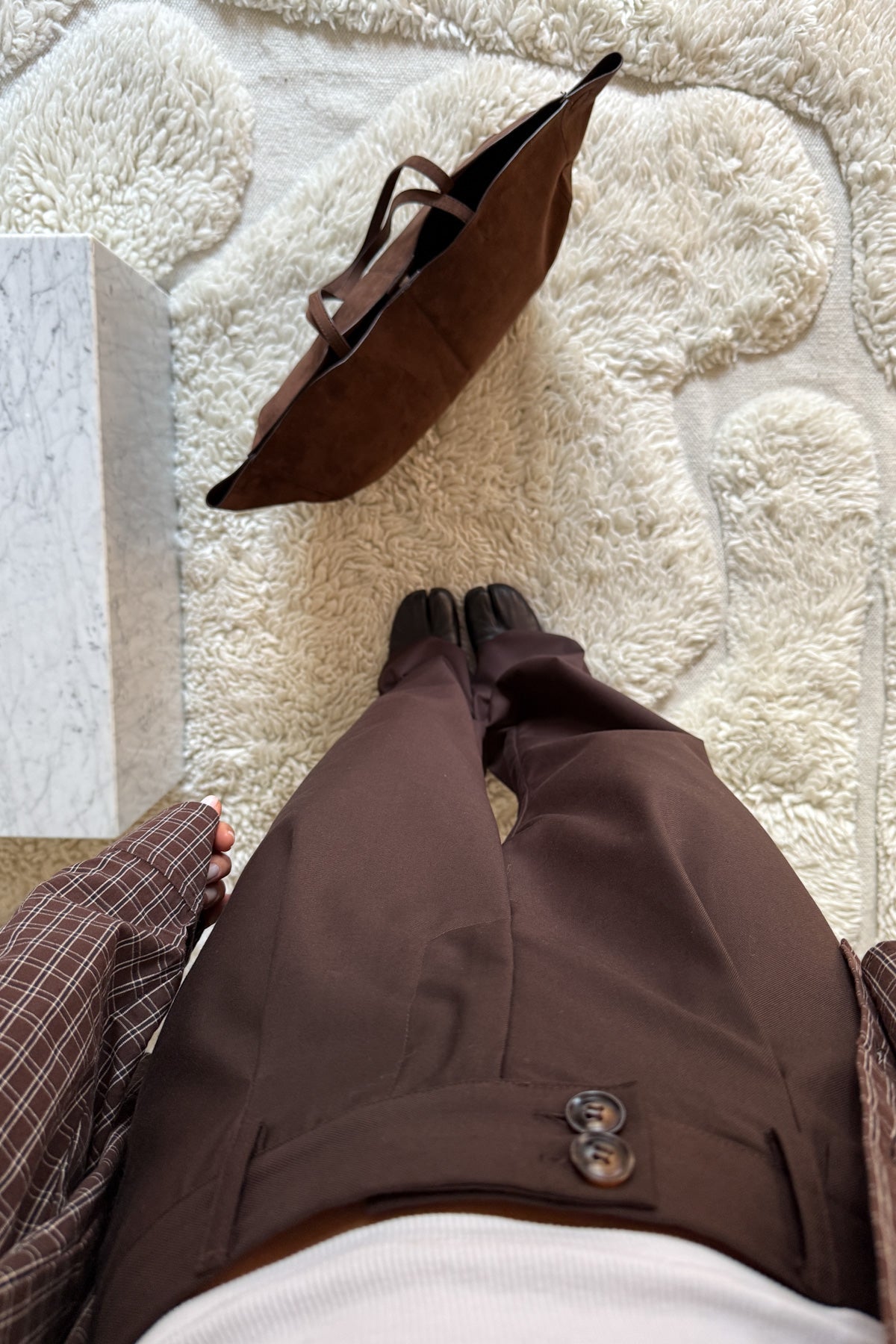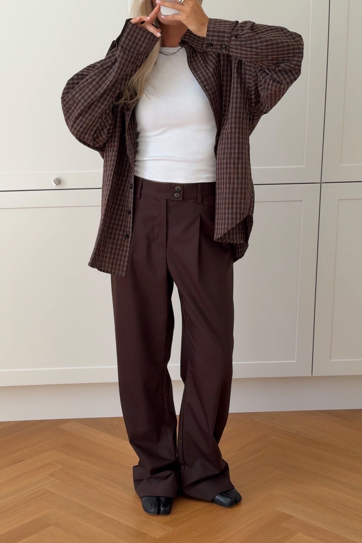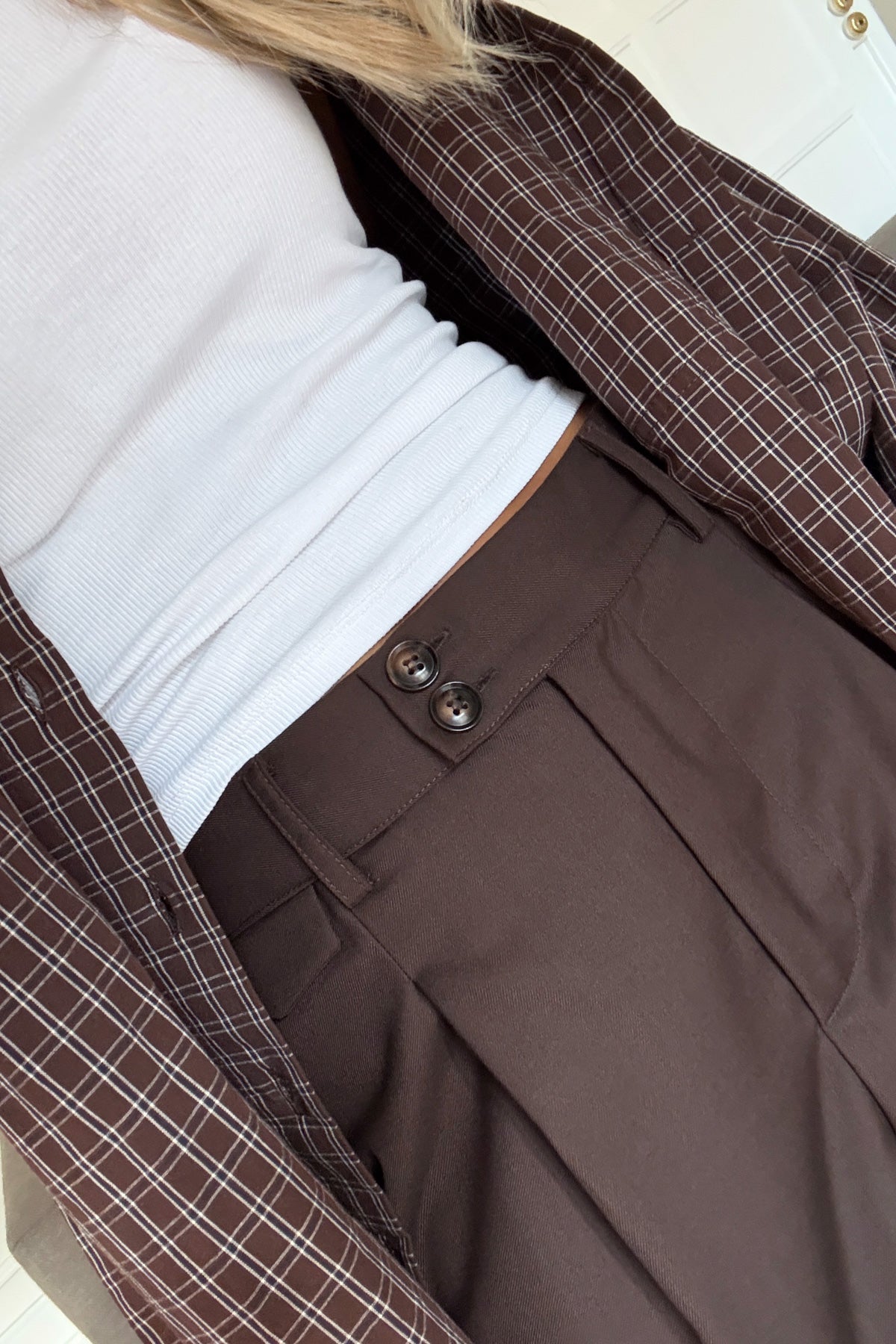 Joann Suit Pants har løs passform med frontplissering og midtbelte. De har justerbare stropper nederst, knappdetaljer på midje og lommeklaff, og finnes i flere farger.