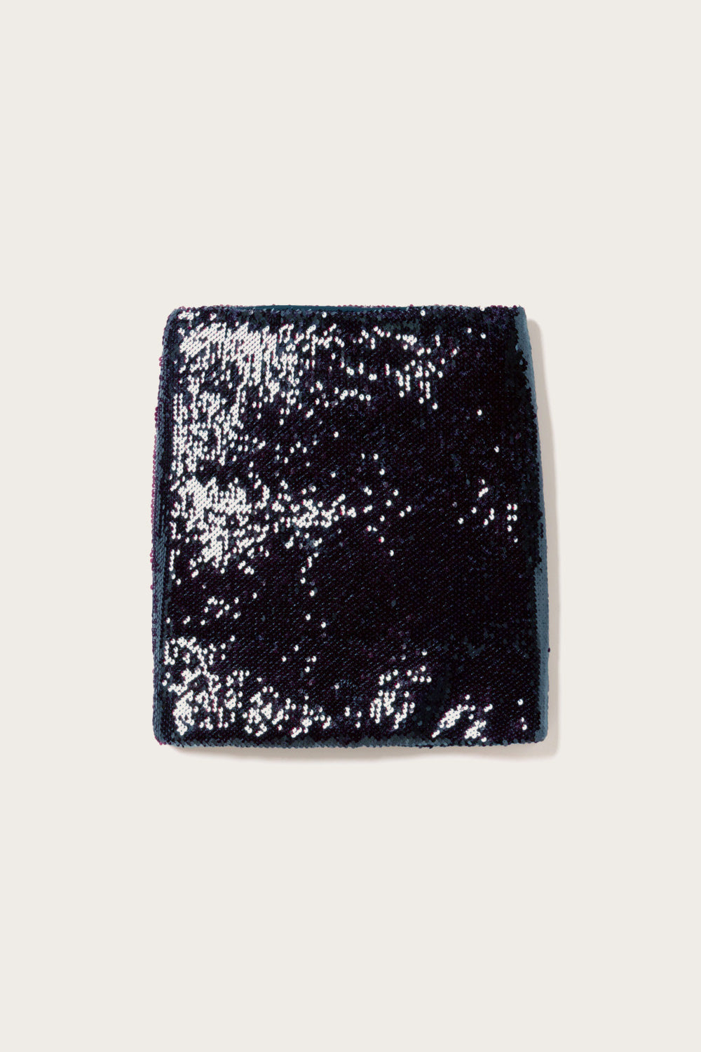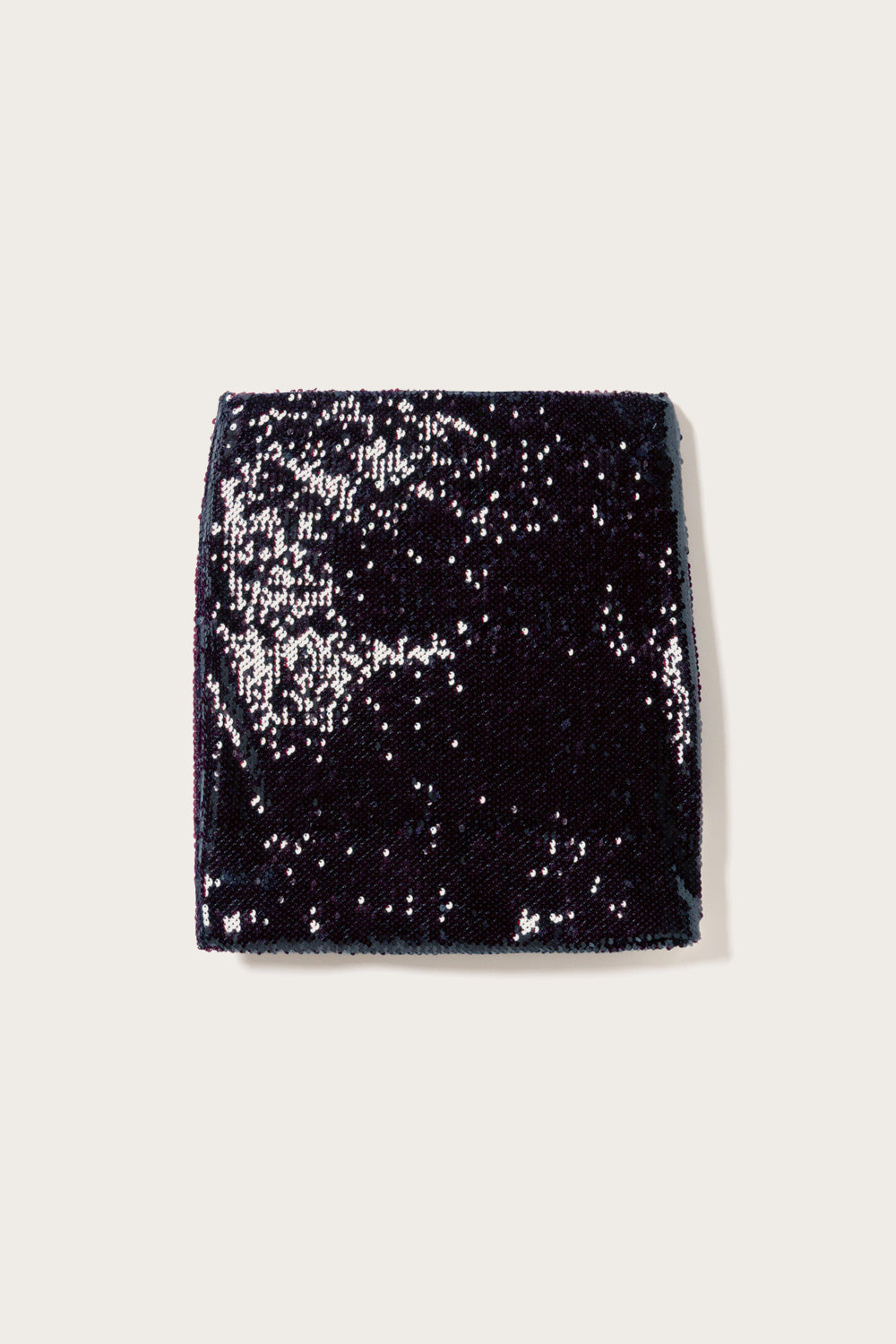 Kayden Skirt er et kort tettsittende skjørt med paljetter og glidelås i siden.