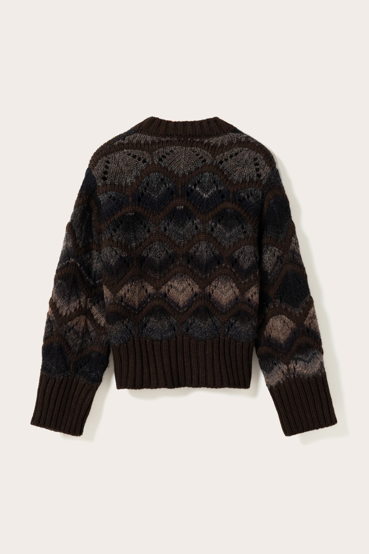 Latanna Knit er en genser med mønster, lange ribbkanter og en rund halsutringning. Latanna Knit kan styles med jeans eller et langt skjørt for en avslappet hverdagslook.