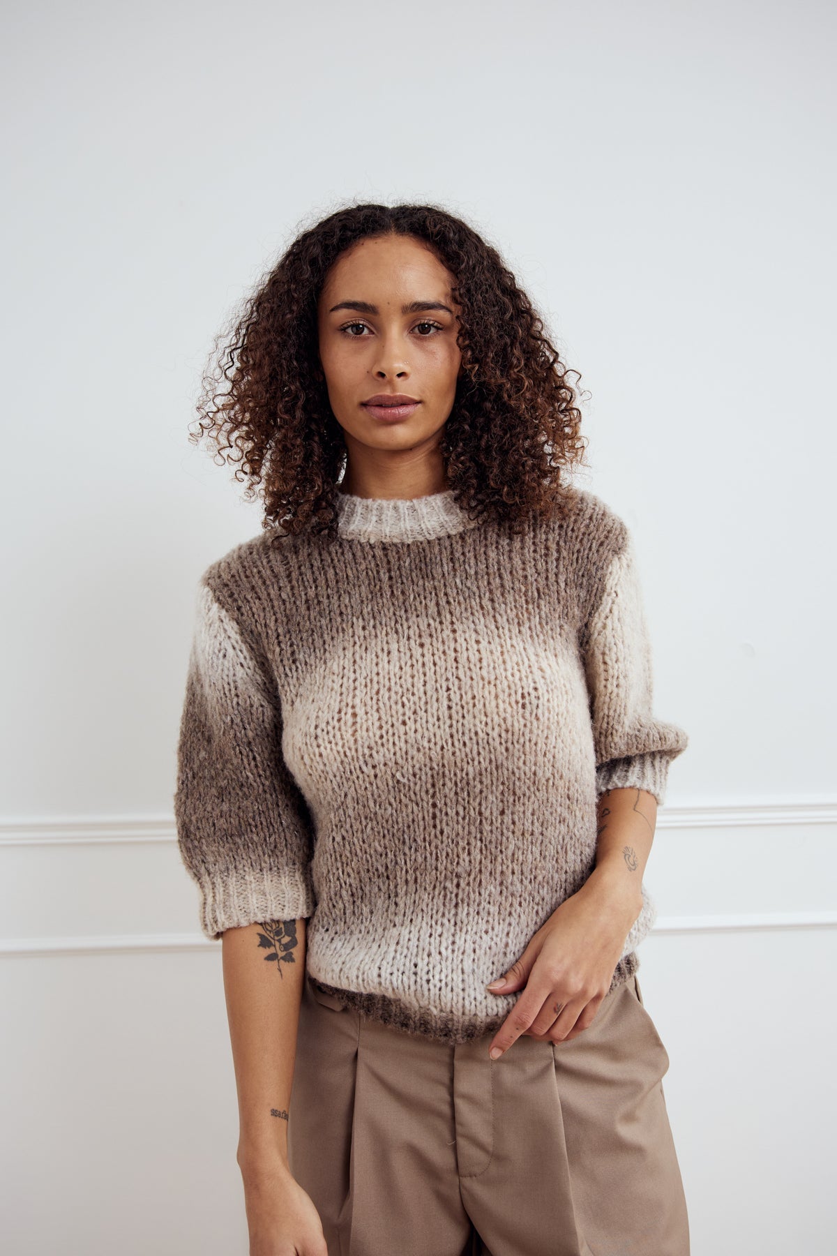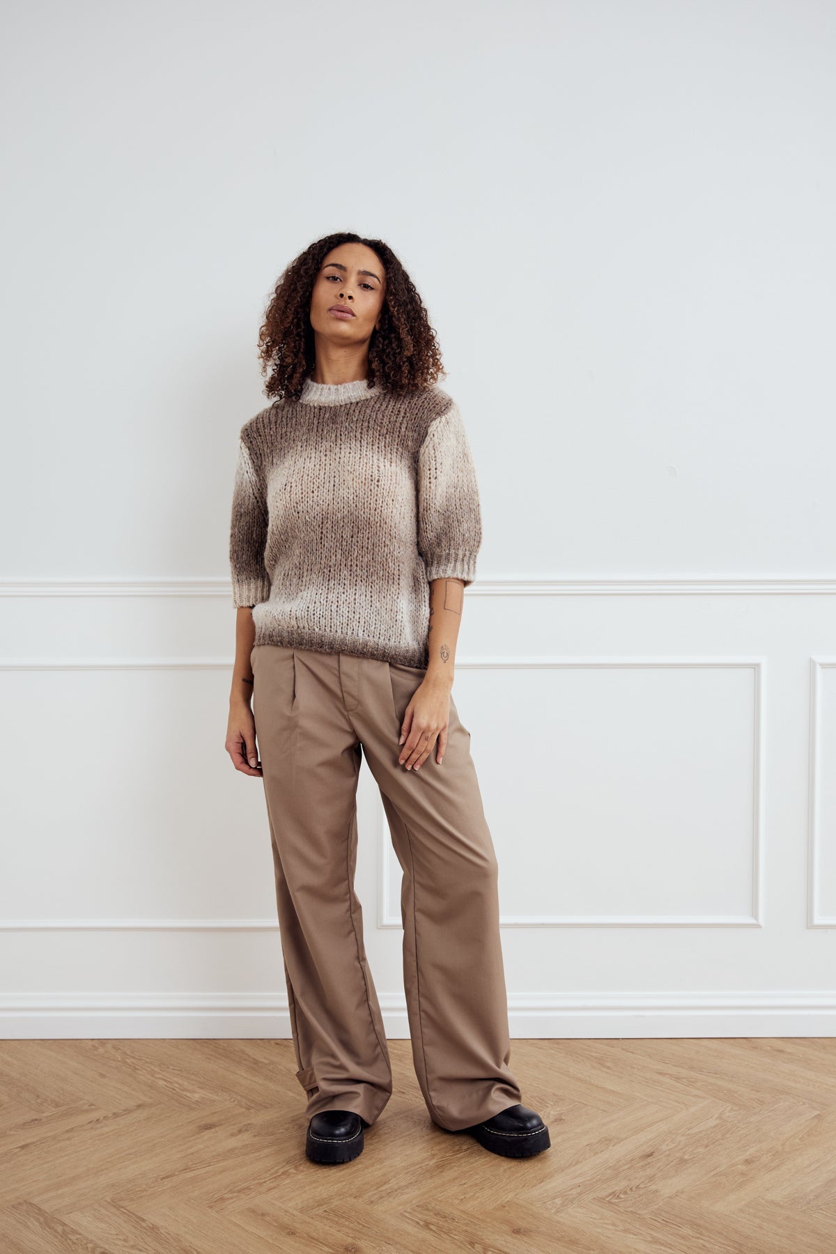 Leana Knit Top er en strikket topp med korte ermer og ribbkanter ved hals, ermer og nederkant. Toppen har en løs passform.