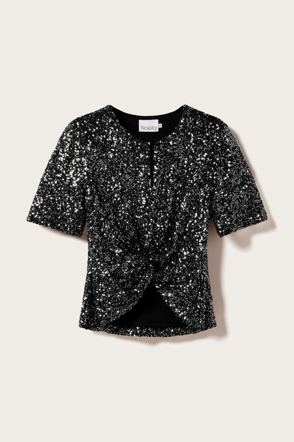 Lemon Blouse er en vridd T-skjorte med paljetter og splitt midt på fronten. Perfekt til festlige anledninger, kan styles med høytlivede bukser eller skjørt for et partylook.