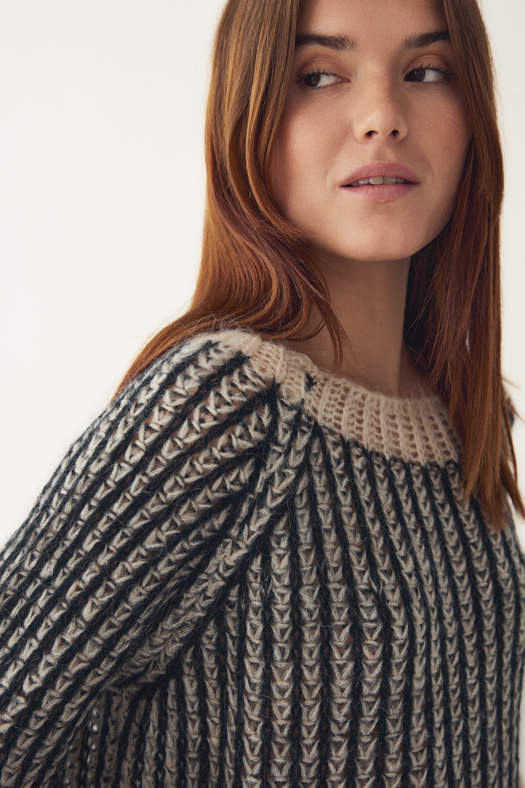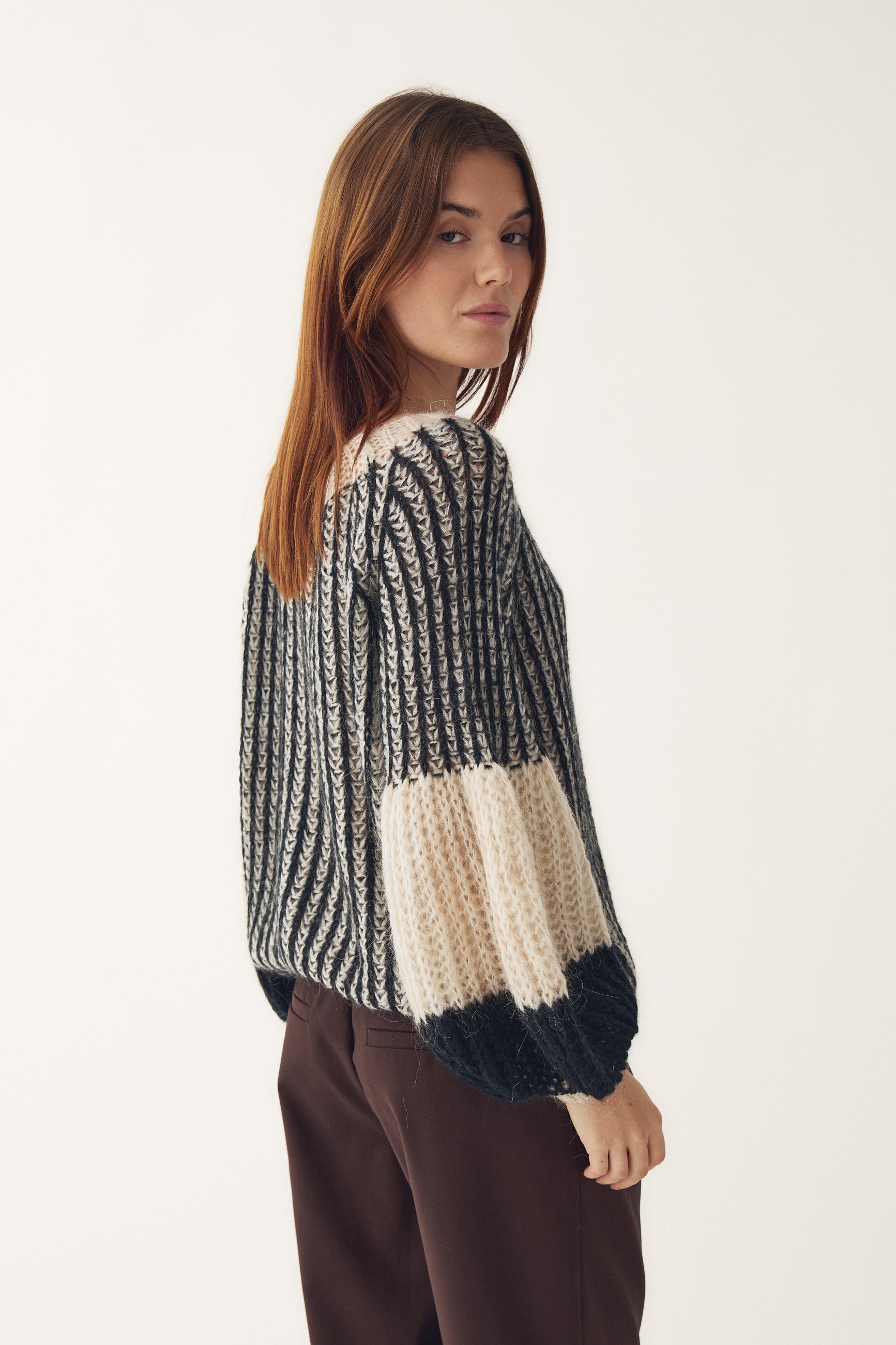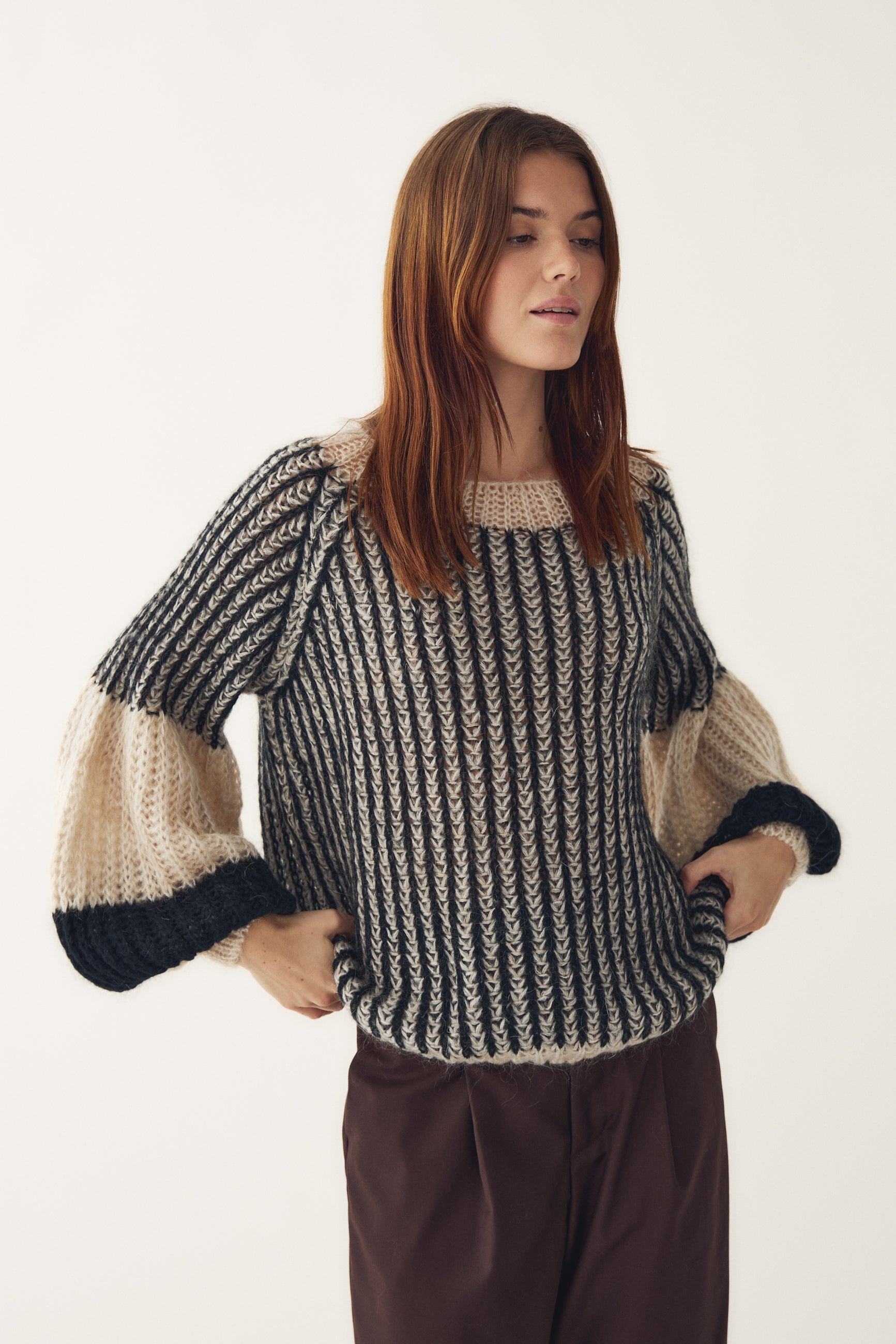 1 x Noella Liana Knit Sweater Cream/black ble lagt til i handlekurven din