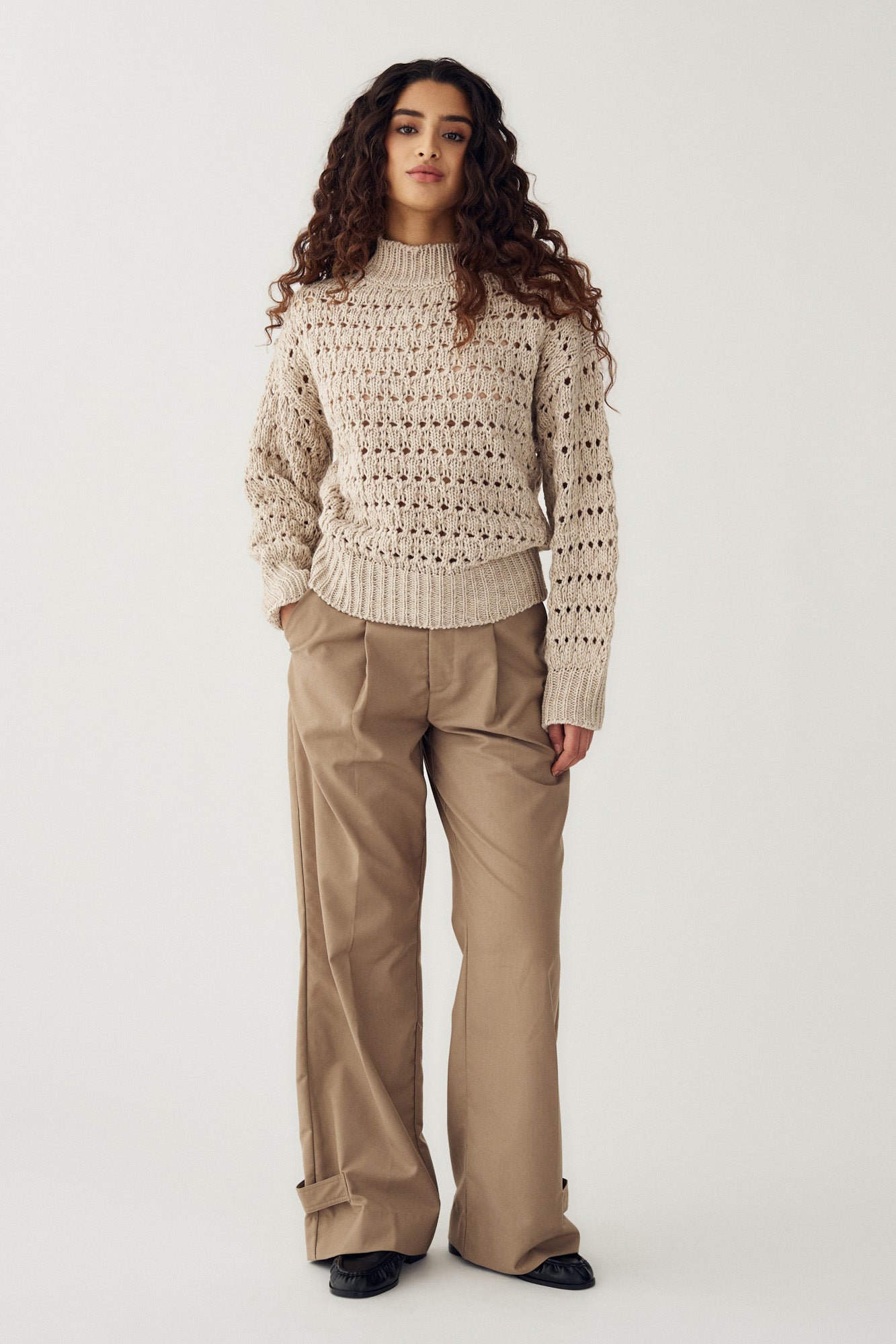 Loranne Knit er en strikkegenser med hullmønster og ribbkanter. Den har en løs passform som gjør den enkel å style til hverdags.