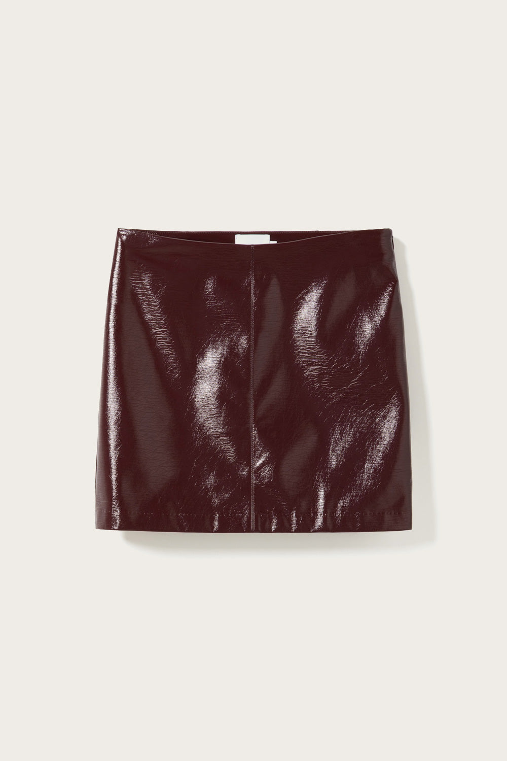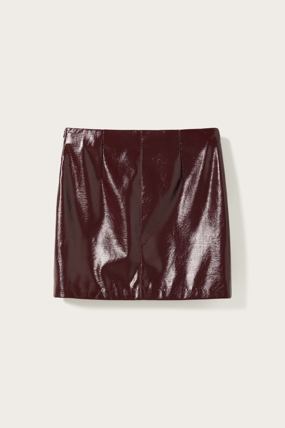Lovetta SH Skirt er et kort skjørt med markert cutline foran og skinnende finish. Den figurnære, rette passformen gjør det enkelt å style med T-skjorte til hverdagsbruk eller med en partytopp til spesielle anledninger.