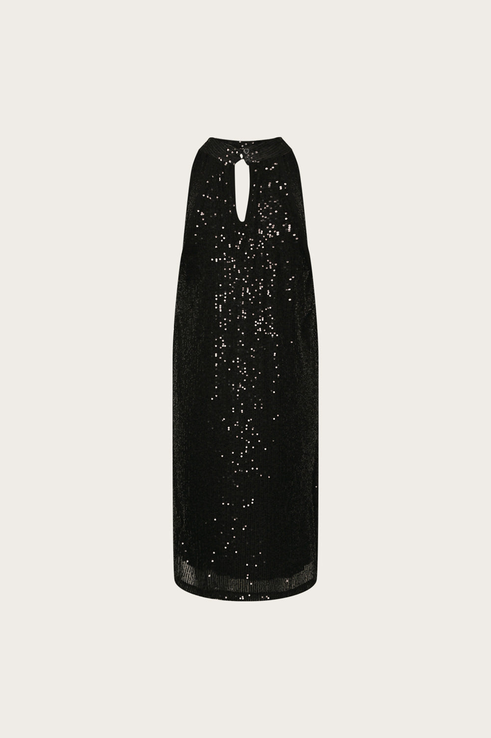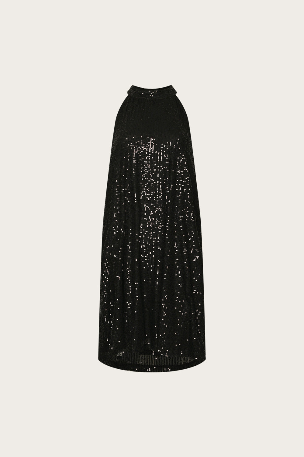 Luvena Dress er en kort kjole i A-formet silhuett med halterneck og paljetter. Perfekt som partywear.