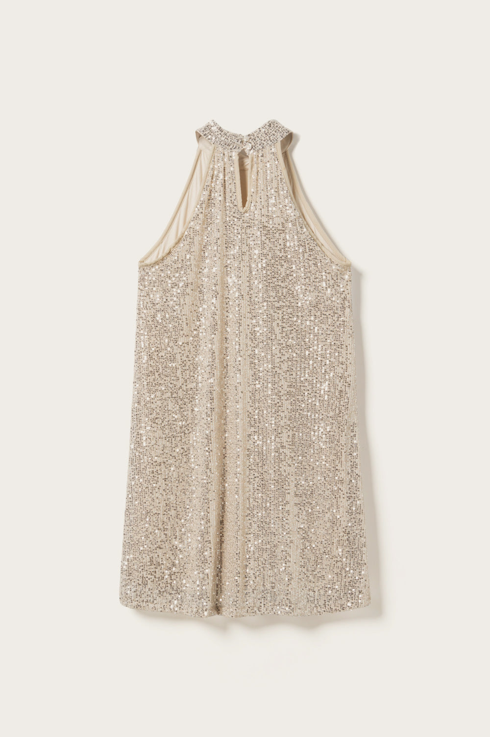 Luvena Dress er en kort kjole i A-formet silhuett med halterneck og paljetter. Perfekt som partywear.