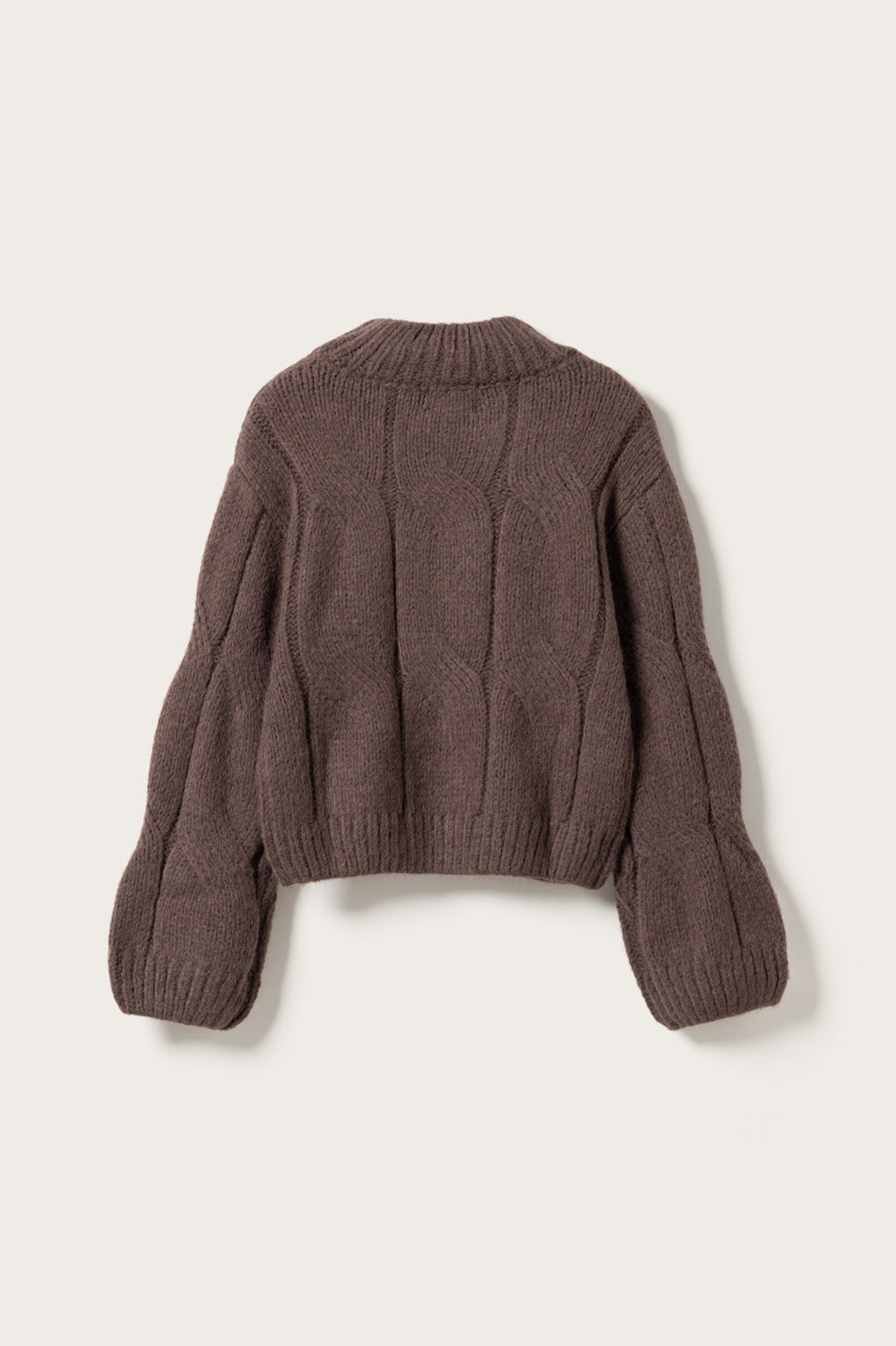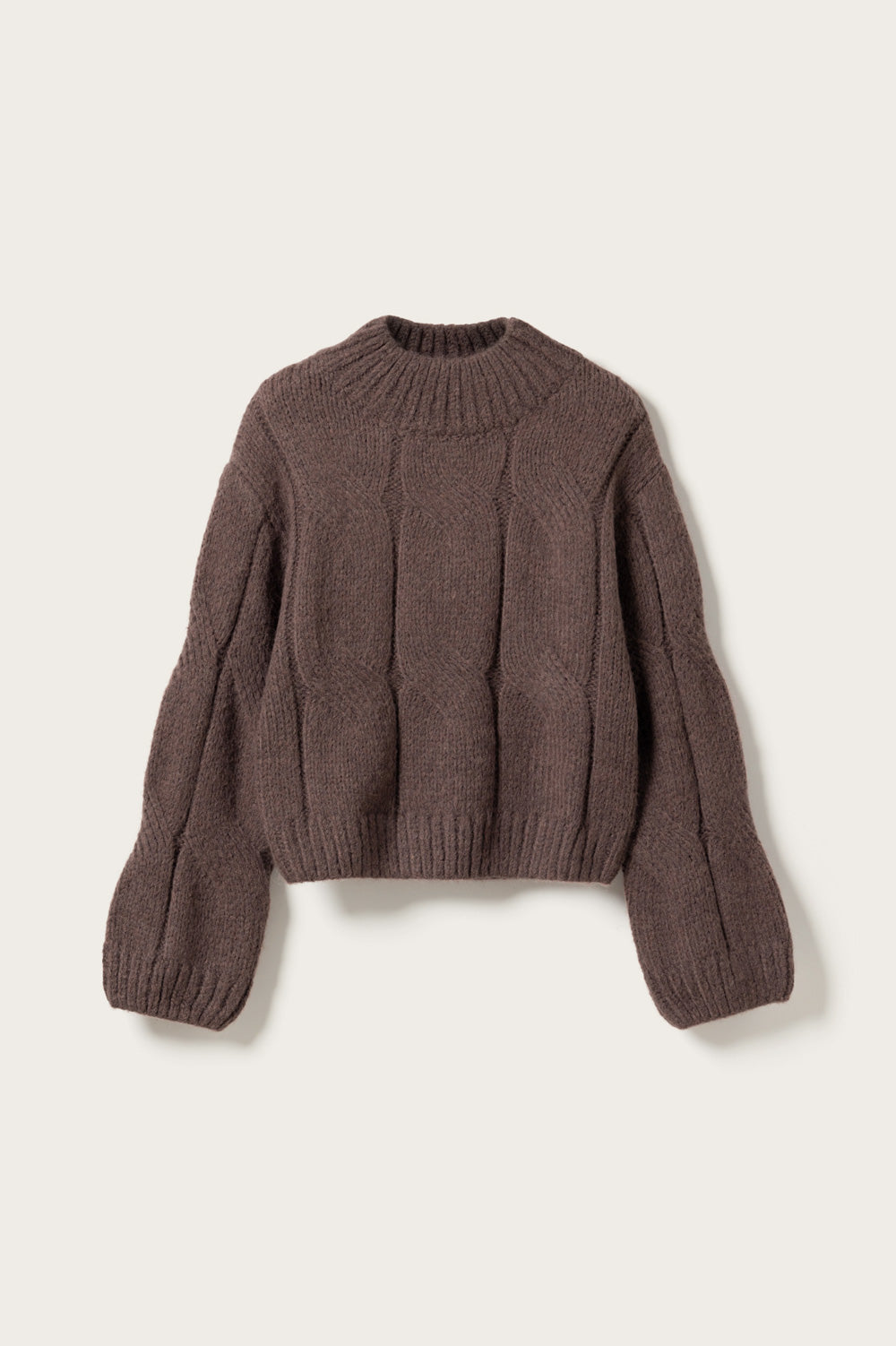 Lynx Knit er en genser designet med et bølget flettestrikkmønster, ribbkanter og voluminøse, komfortable ermer. Lynx Knit har en lett cropped og løs passform.