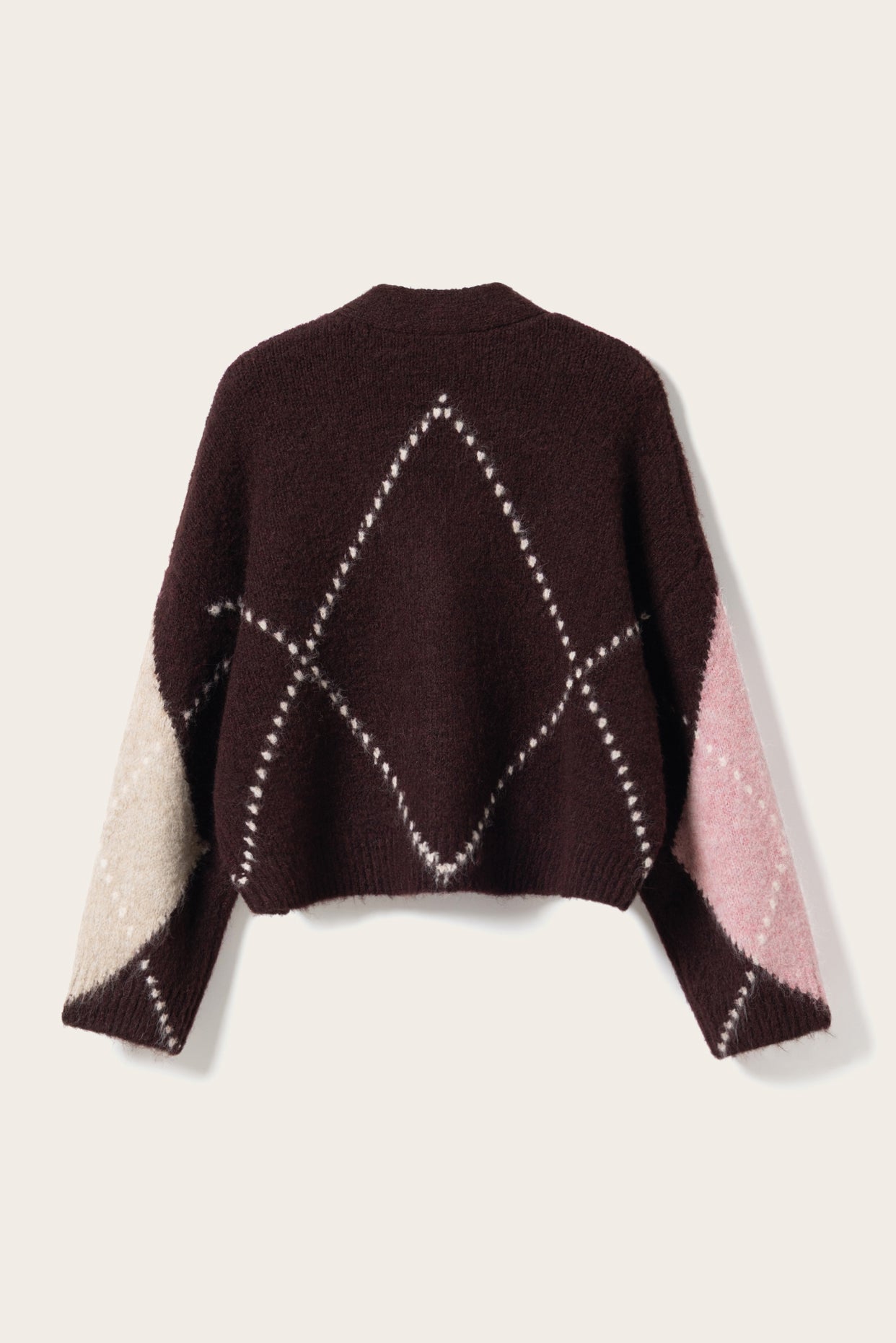 N-Laiana Knit Cardigan er en oversized cardigan med klassisk argyle-mønster. Den har en løs passform, lange voluminøse ermer og en kortere lengde. Argyle-designet gir et tidløst og eksklusivt uttrykk, perfekt for høstens mange trender. Et must-have i garderoben.