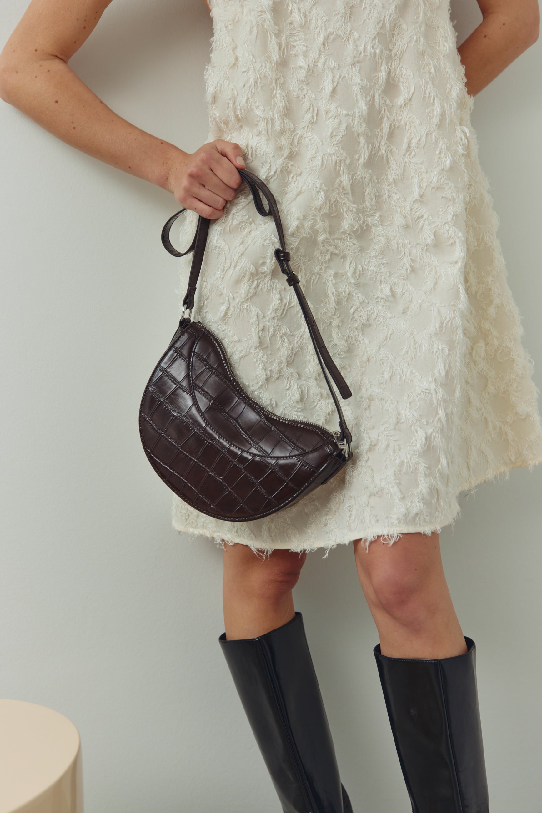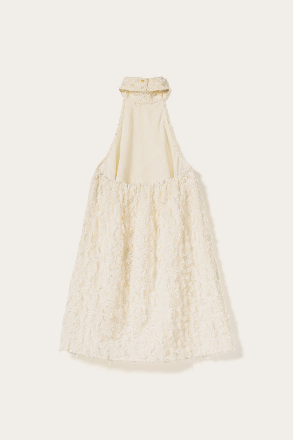 N-Maci Dress er en kort halterneck-kjole laget i et fast, strukturert materiale som holder sin A-linjesilhuett.