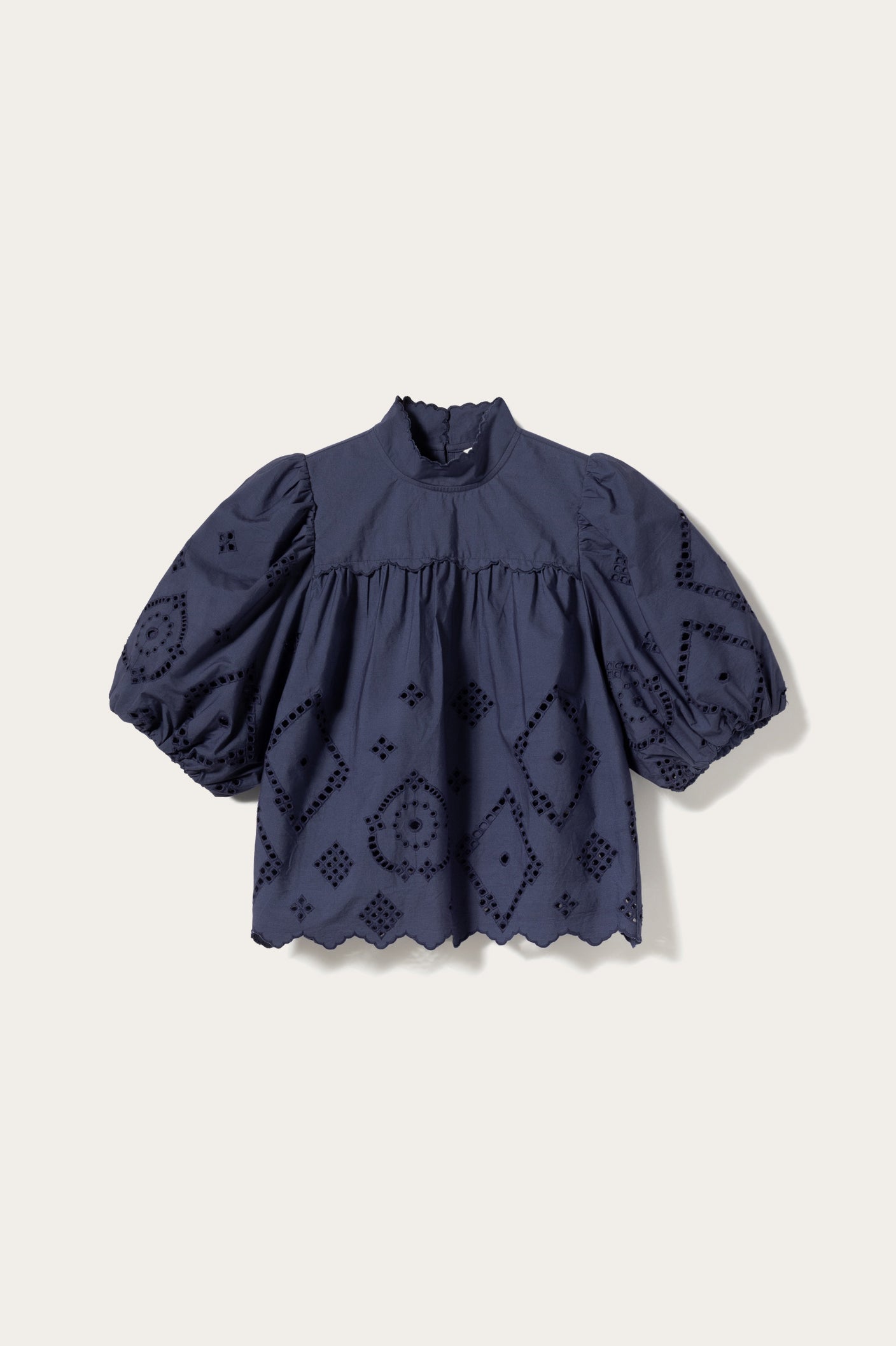 N-Marilyn Blouse er laget i myk broderie anglaise. Blusen har voluminøse ballongermer og en brystcutline med fine blondedetaljer.