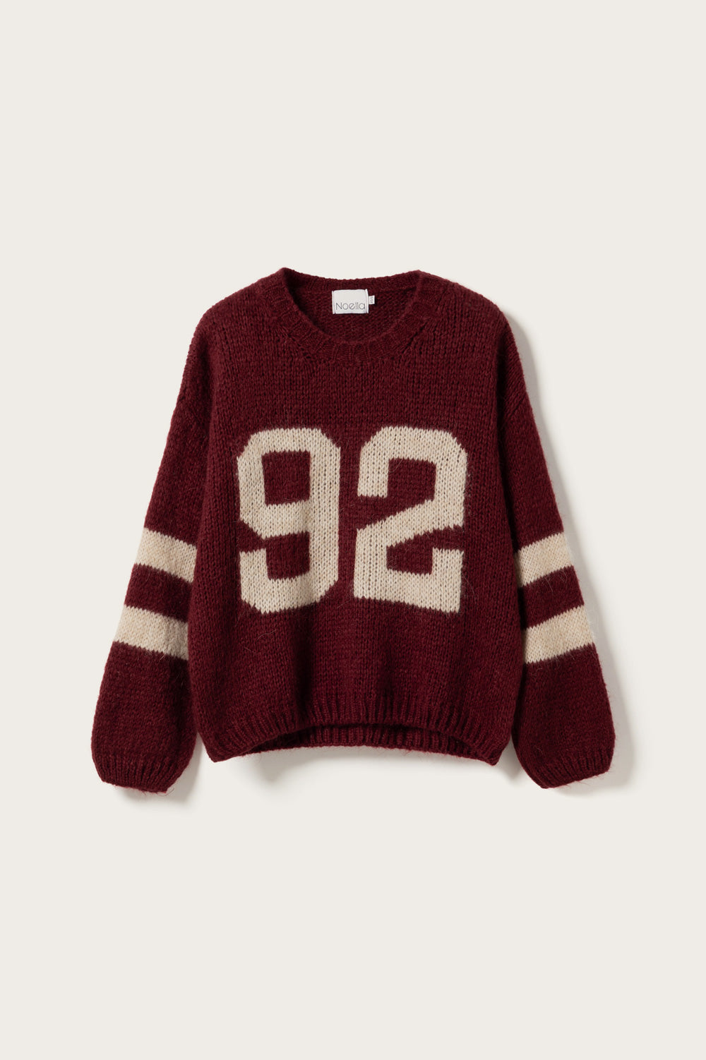 Ninety-Two Knit er en klassisk genser med løs passform og tall integrert i strikken. Den løse passformen skaper et enkelt og avslappet hverdagsuttrykk. Den kan styles med både bukser og skjørt.